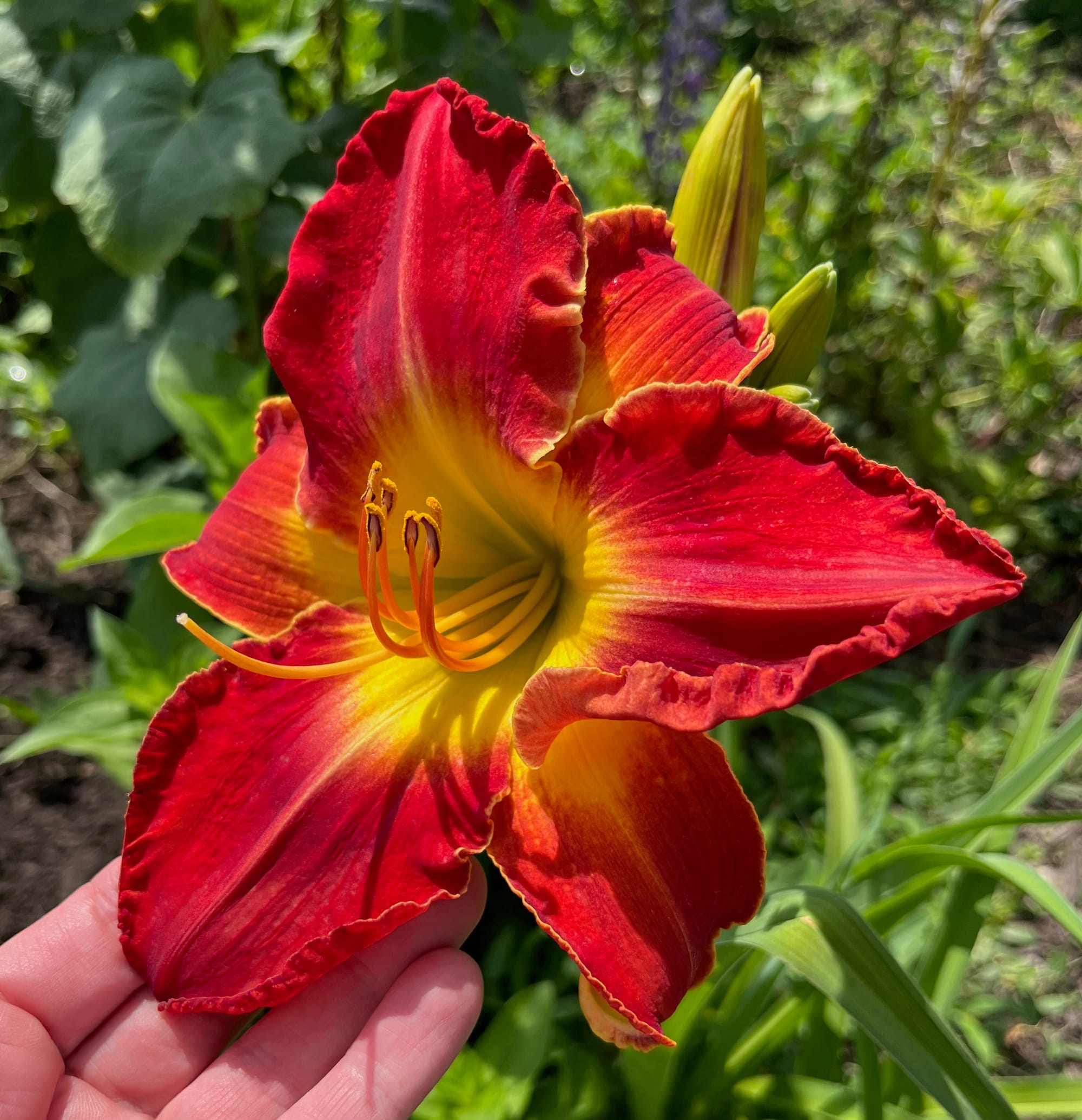 I am now in the middle of giant daylily season. And have been blown away by so many huge daylily blooms. Many did bloom the first year, but not nearly as spectacularly as the second year. If you haven't grown a giant daylily, I insist you try it. They are hard to kill and will make your neighbors envious. They are something to see in person. Photos do not do justice. You do have to do a bit of research and ask around for the biggest blooms a daylily seller might have in stock. You can even grow these from seeds. I was barely trying last year and got a bunch of seeds in my hybridizing attempts. I don't think there is an easier flower to hand pollenate.