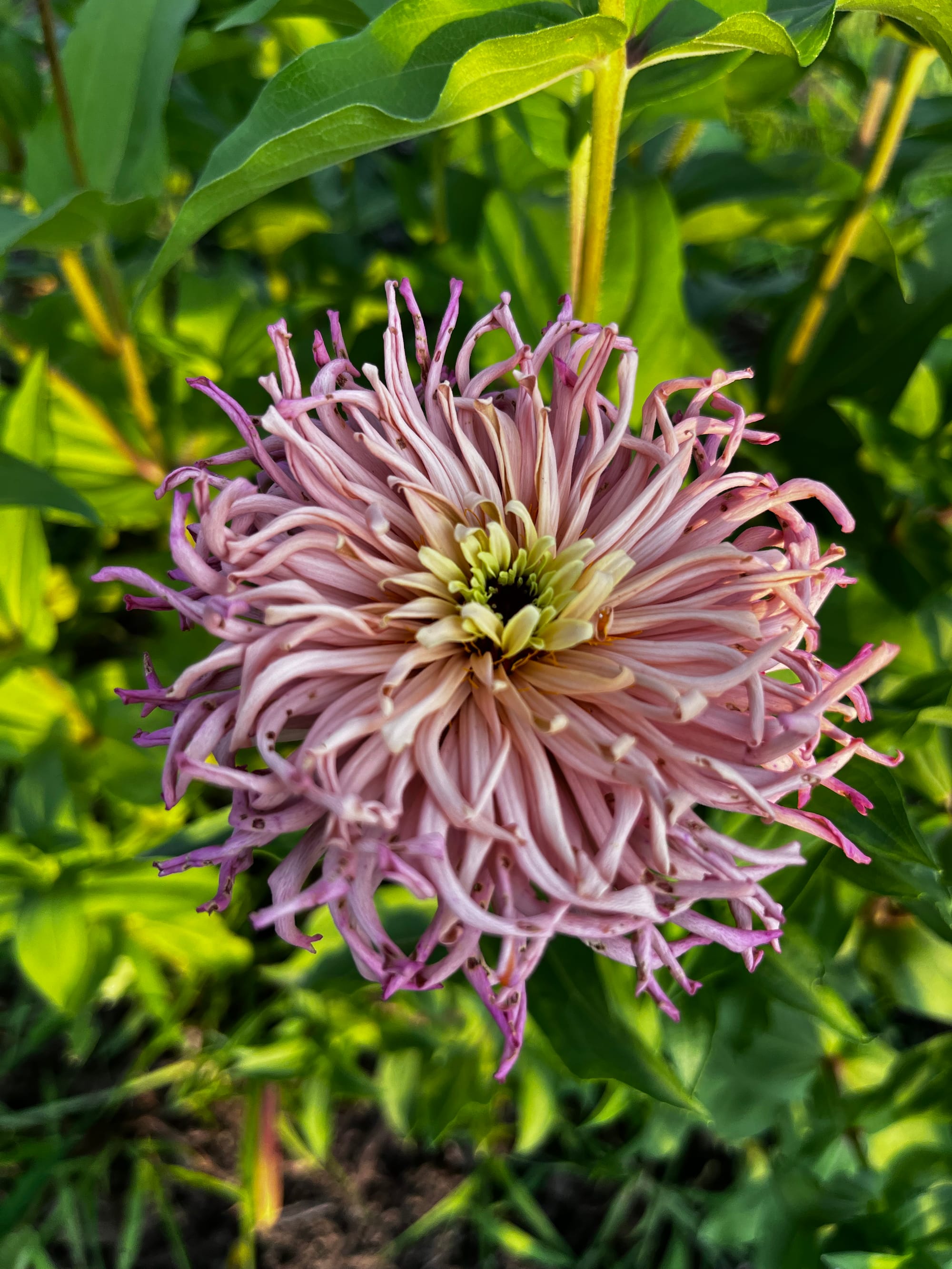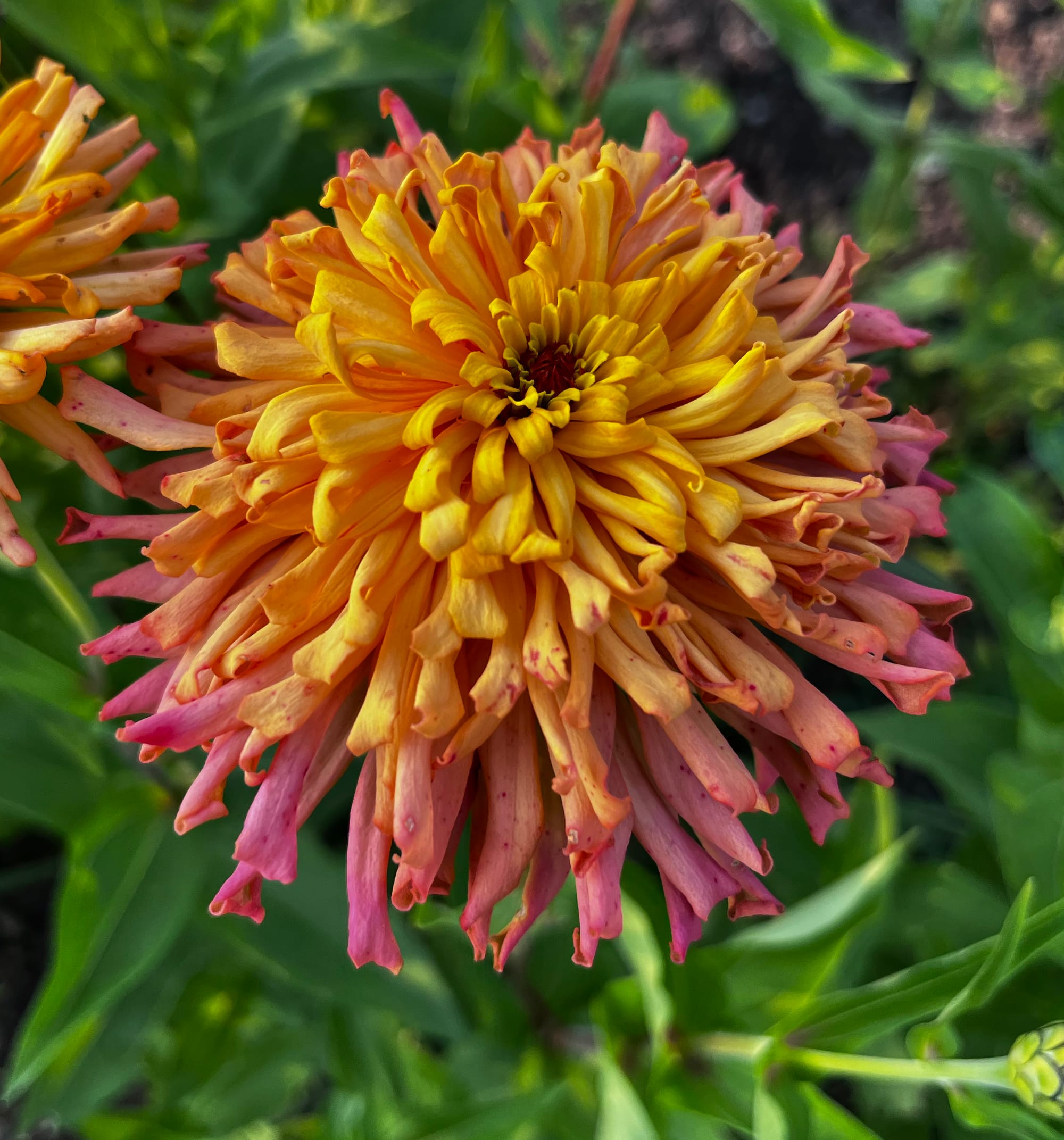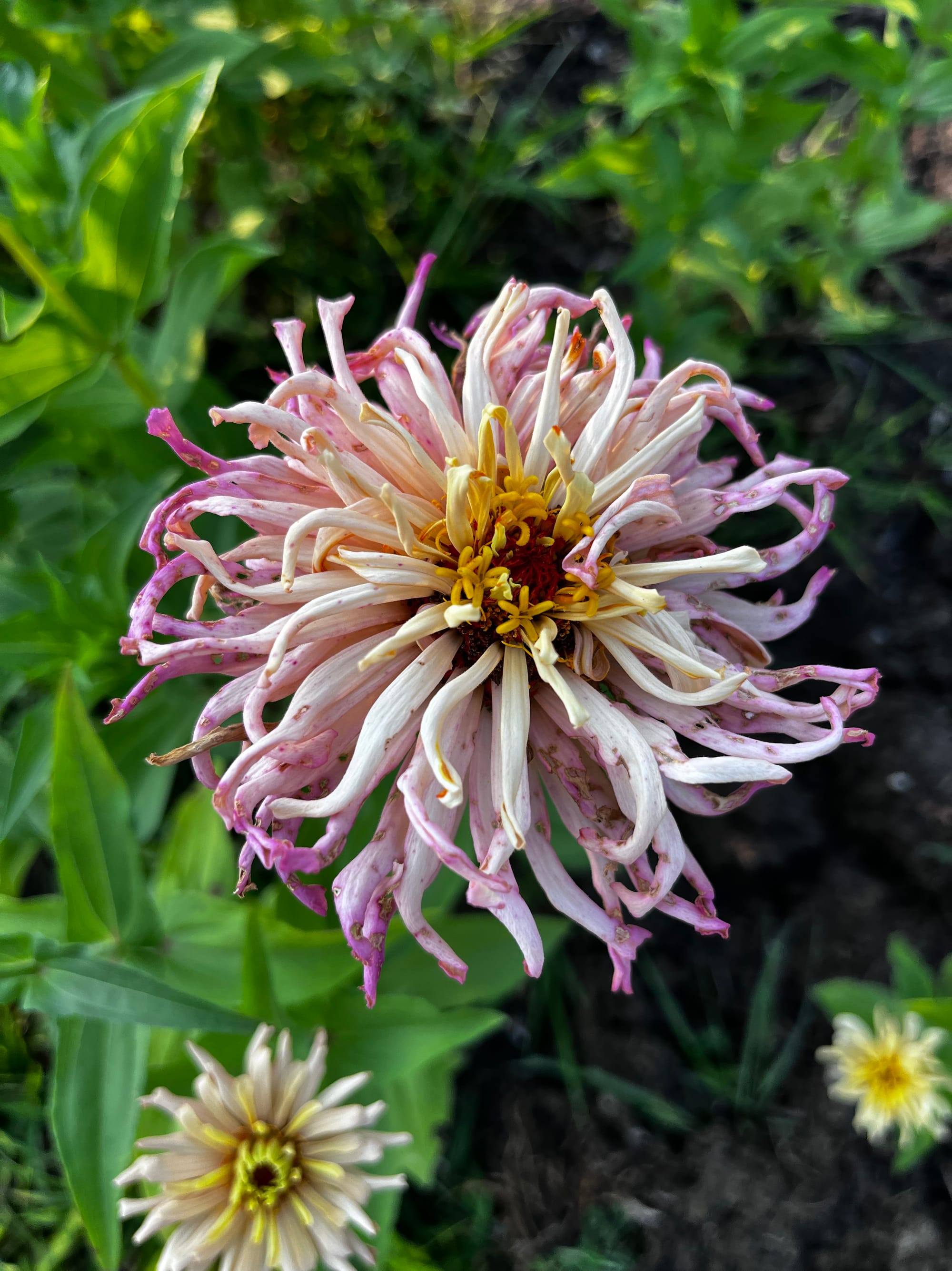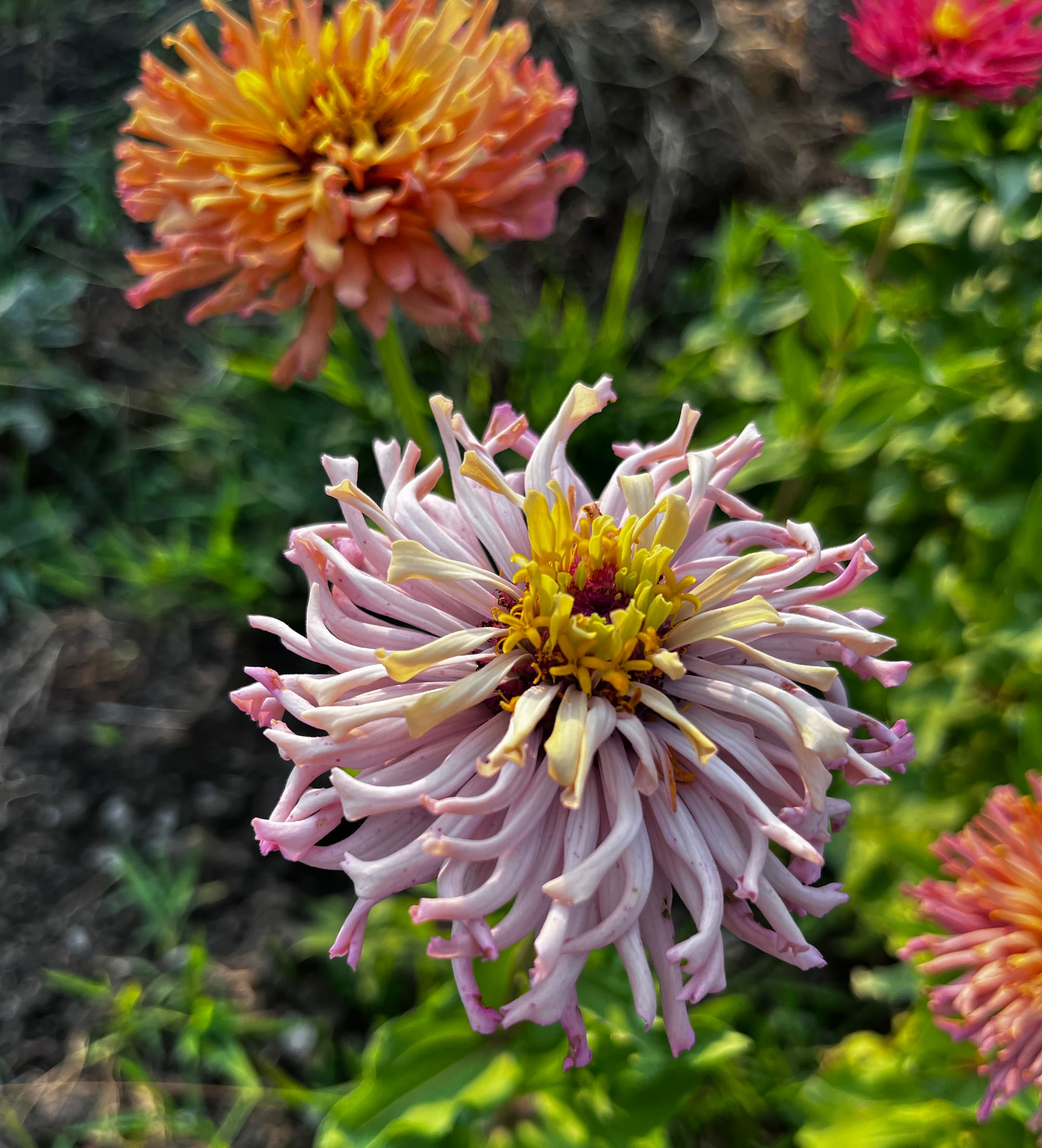 By the way, you can read more about my zinnias at this link. As they are in full bloom, I am always observing the flowers and selecting those that stand out for various reasons, such as: