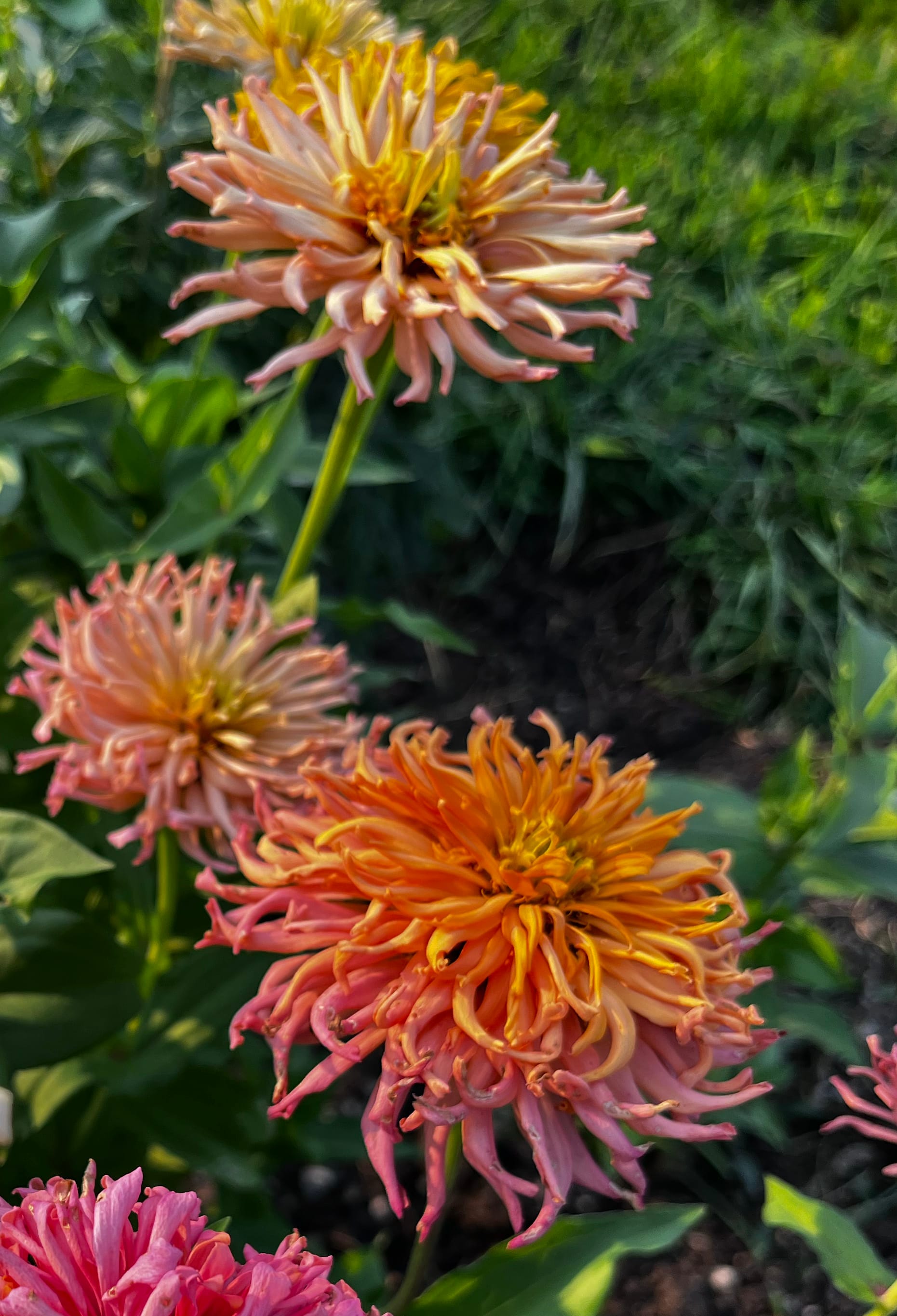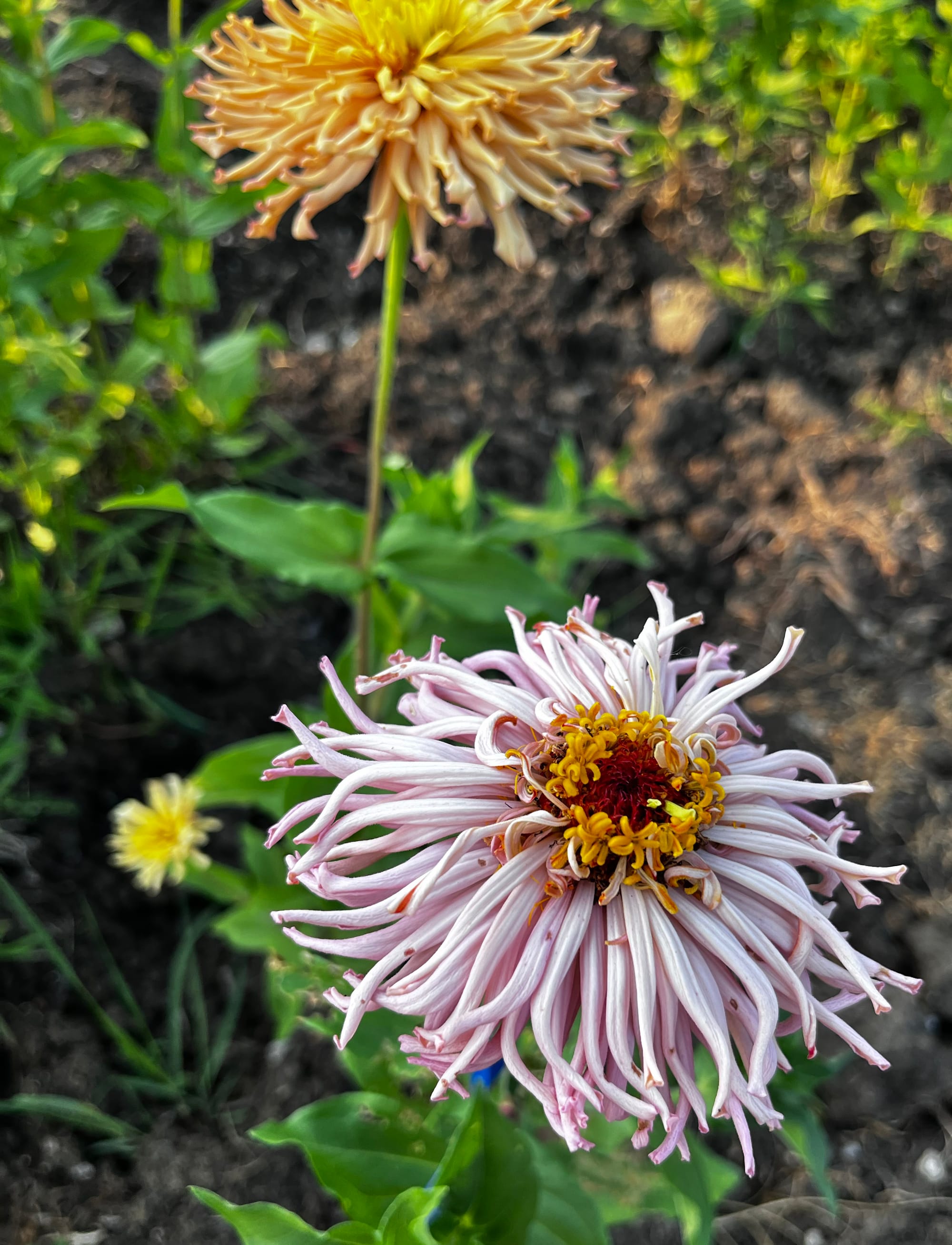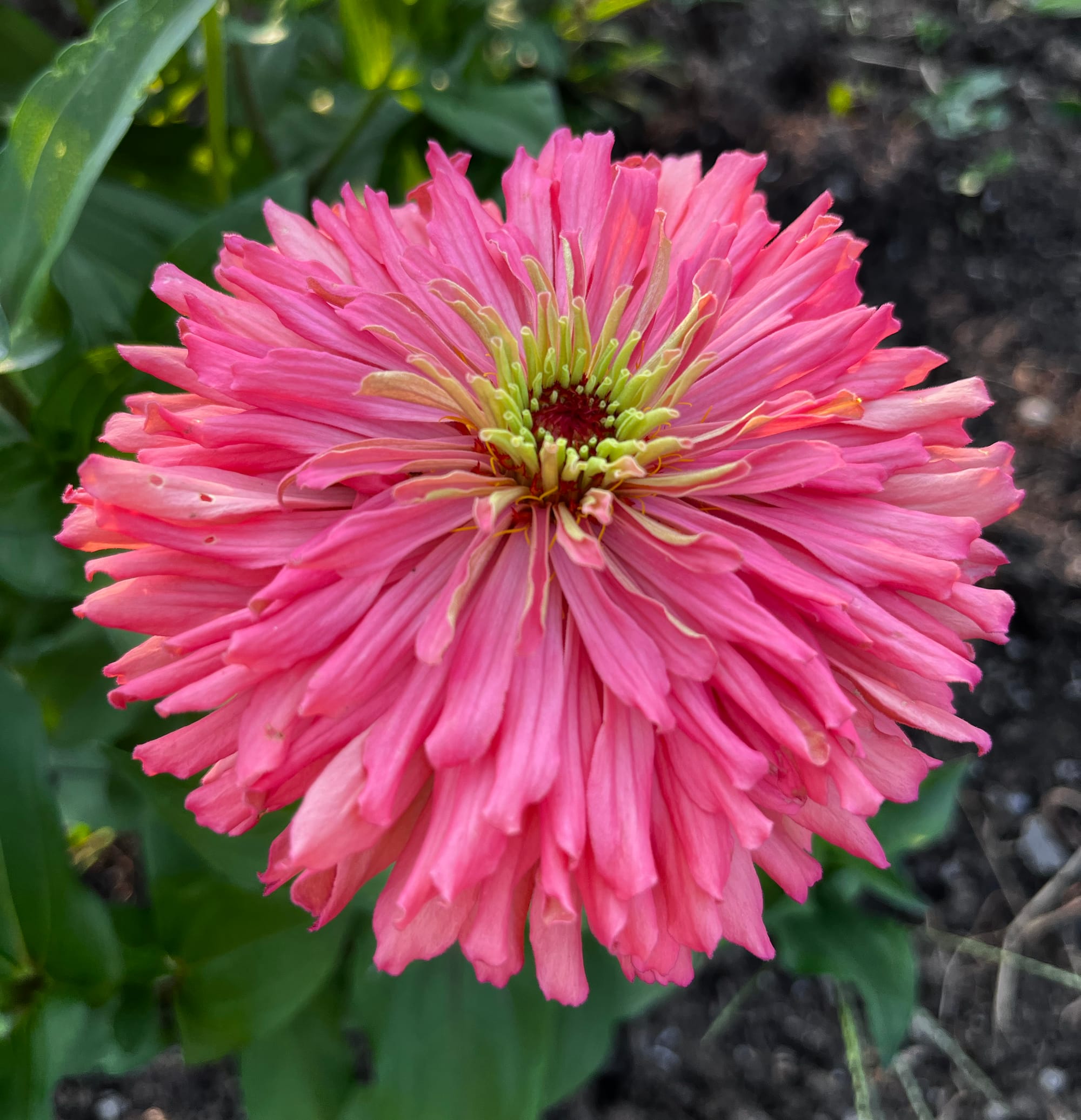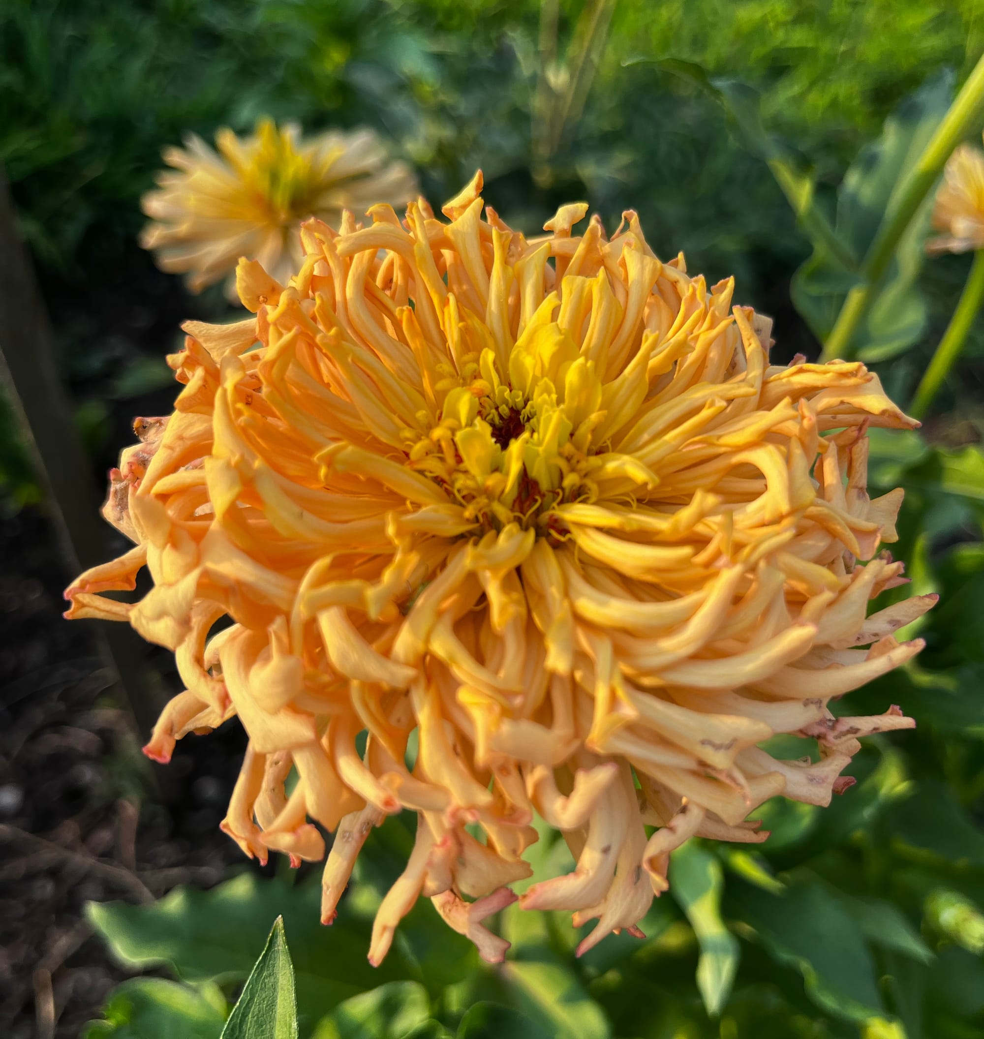 By the way, you can read more about my zinnias at this link. As they are in full bloom, I am always observing the flowers and selecting those that stand out for various reasons, such as: