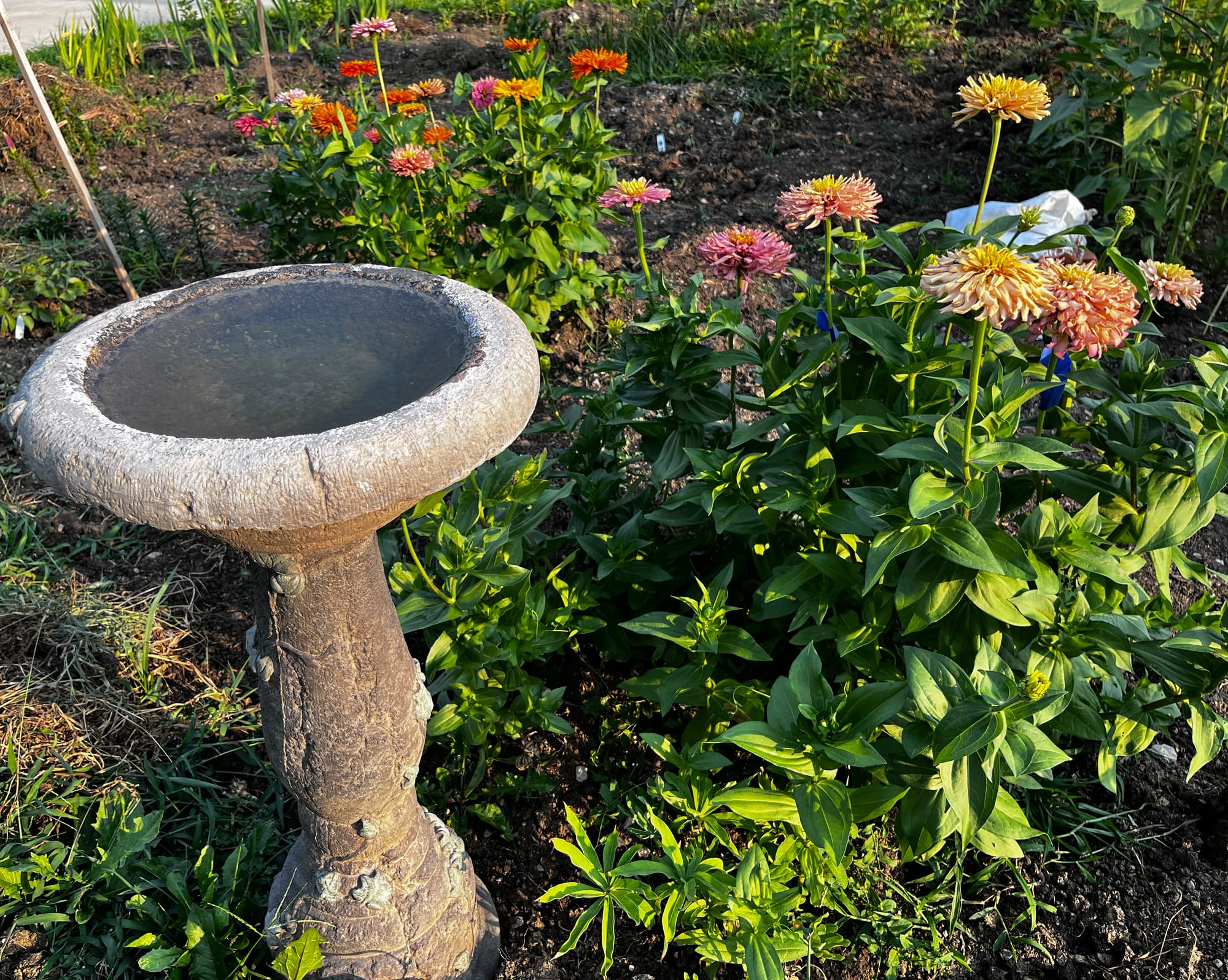 New blooms appear every two weeks or so, creating a continually evolving display. This year, I planted several "waves" of seeds so that as one group of zinnias begins to fade, a new group takes over. I don't usually do much deadheading since I save the seeds. I've planted enough zinnias this year that I should have blooms all the way until frost this fall.